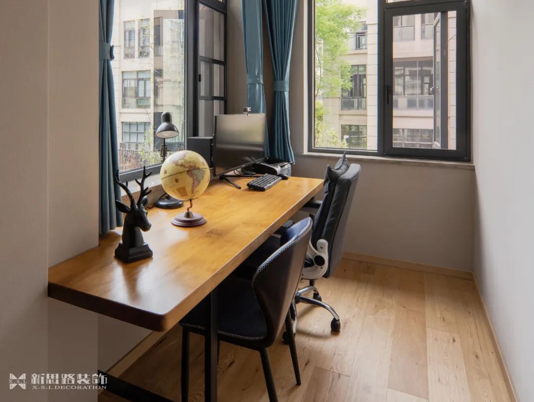 沉穩的書房在主臥旁側,深木色獨有的古韻沉浸在悠然自在之中,書房即可辦公也可以在沙發會客談心,靈動開放的布局與格調生活理念相融合,在注重秩序與功能的同時、平和、穩重的氣韻。