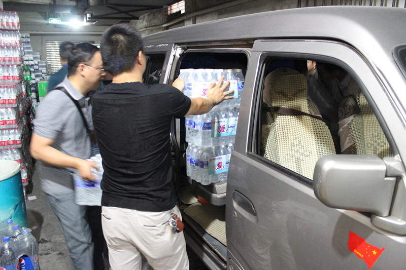 慰問小組成員也向我們尊敬的客戶送水