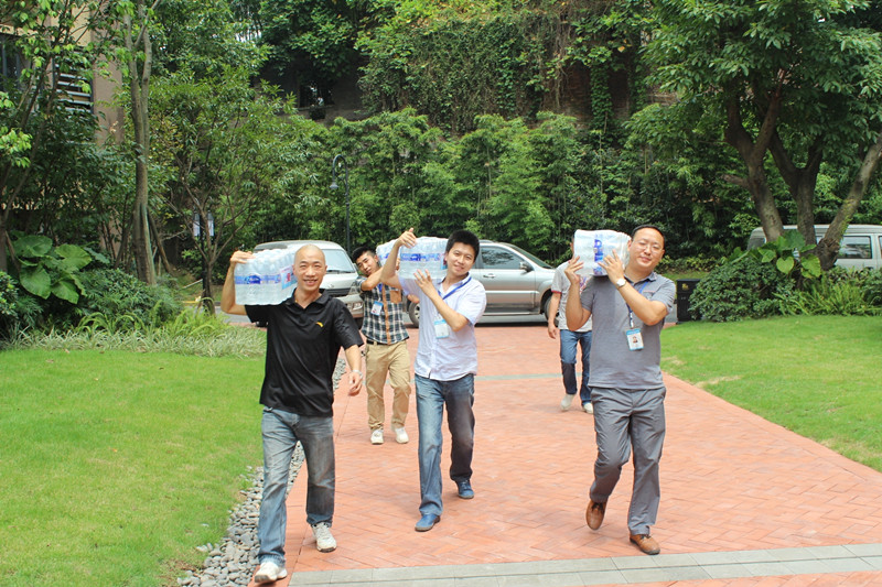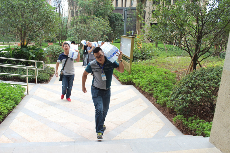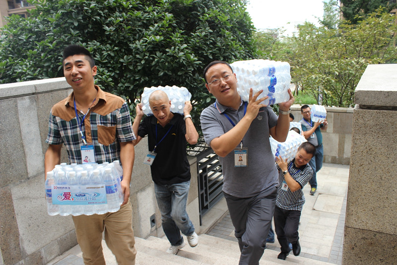臺階再高,天氣再熱,但所有人的腳步依舊堅定,心懷員工,都想快速地把水送到一線員工手中以解干渴。