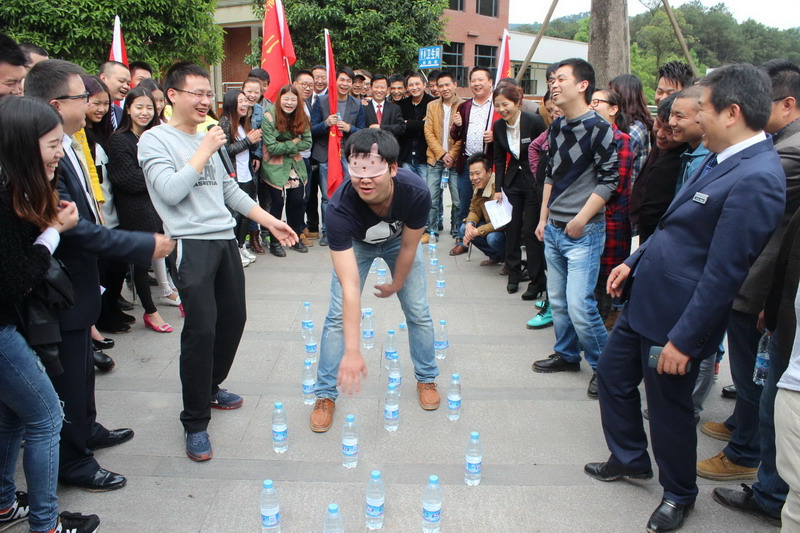 活動中,大家不分年齡大小、不論職位高低,全身心投入,體驗(yàn)團(tuán)隊(duì)活力,感受彼此友情,改善交際關(guān)系,融洽團(tuán)隊(duì)合作精神。在“歌詞大接龍”游戲中,大家巧用團(tuán)隊(duì)智慧,為了爭奪“麥王”頭銜而使出渾身解數(shù)。在隨后的“穿越地雷陣”、“團(tuán)隊(duì)踢毽子”、“皮球大作戰(zhàn)”等游戲中,所有隊(duì)員在各自隊(duì)長的帶領(lǐng)下,相互信任、通力協(xié)作,充分發(fā)揮團(tuán)隊(duì)合作的力量,為了最后的勝利而全力以赴。經(jīng)過3個小時的激烈比拼,第2隊(duì)“神鋒隊(duì)”隊(duì)?wèi){借出色的團(tuán)隊(duì)協(xié)作能力獲得了最后的冠軍,每個隊(duì)員也都獲得了很有紀(jì)念意義的獎品,整個拓展活動圓滿結(jié)束。