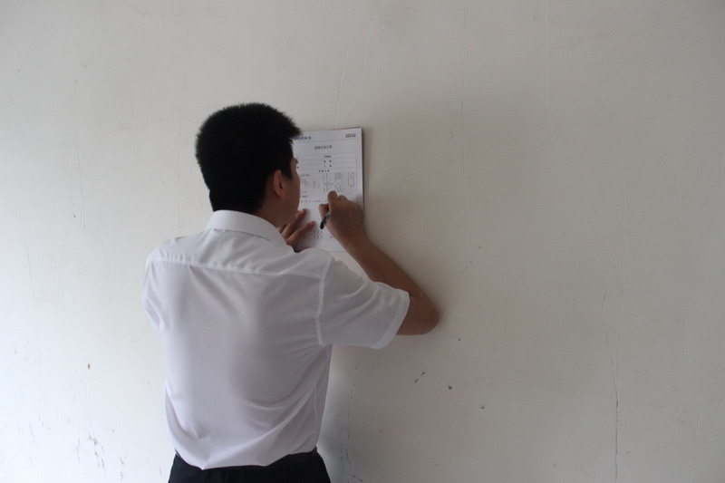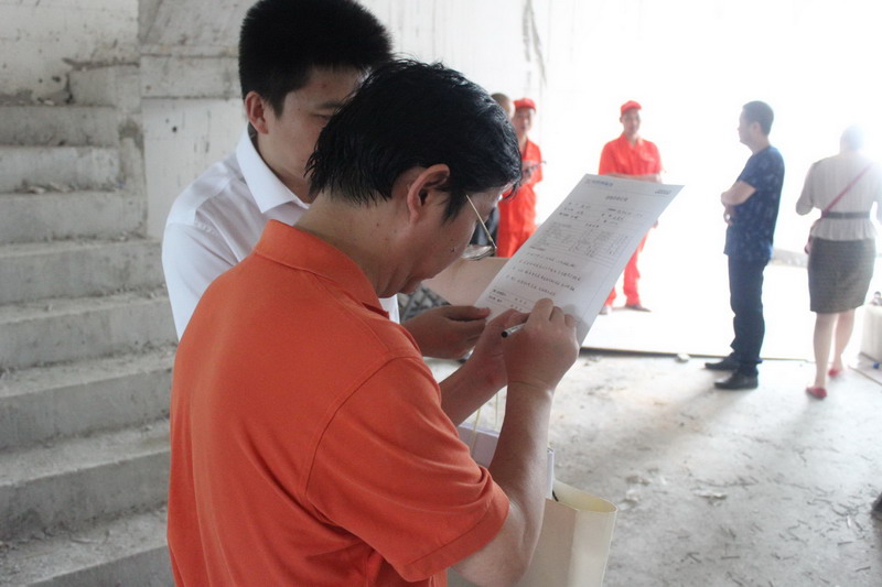 質(zhì)檢正在認真填寫客戶服務手冊,以確認本次進場交底符合公司工程施工管理的相關(guān)規(guī)定。