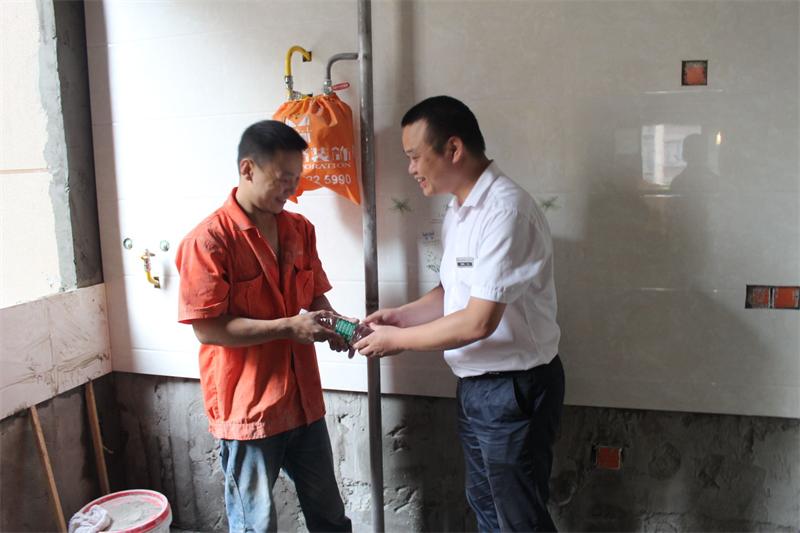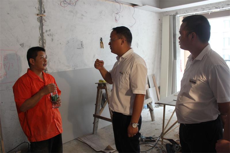 文經理叮囑工人師傅一定要注意安全,多喝水,防止中暑