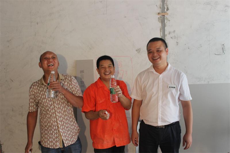 面對如此炎熱的天氣,面對夏日高溫的煎熬,戰斗在工地一線的員工們不畏高溫,攻堅克難,頑強拼搏,為給客戶帶去更高品質的裝修服務,推進公司經營業績的順利完成,作出了重要貢獻。慰問小組每到一處工地,都要跟工人師傅道一聲辛苦了,詢問他們的飲食起居和高溫防護措施情況,叮囑大家要做好防暑降溫工作,注意休息,勞逸結合,時刻不忘安全施工。工程部文經理向質檢和項目經理強調,高溫季節是施工事故的多發季節,要把防暑降溫工作作為當前工作的重點工作抓緊抓好,在高溫期間要把困難考慮得更充分一些,把安全措施制定得更周全一些,把各項工作安排得更合理一些,把防暑降溫工作落實得更細致一些,確保安全度暑。