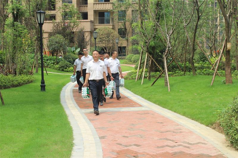 慰問小組扛著水向保利江上明珠工地進發