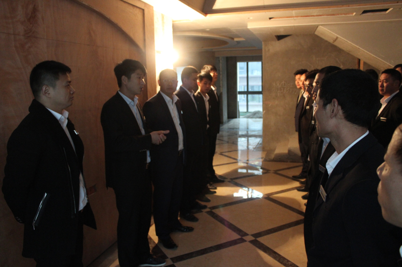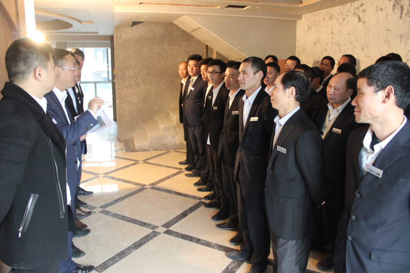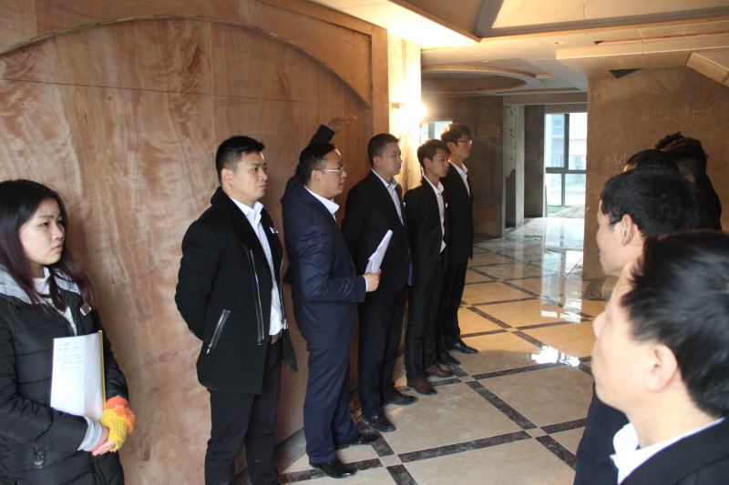 培訓當天氣溫較低,但項目經理們依舊精神飽滿,整齊穿戴西服,井然有序的排成一列,展現出新思路裝飾施工管理隊伍團結向上的良好風貌。此次培訓由工程部文經理親自主講,主要內容是以現場施工管理為主。他結合自己多年現場施工及管理經驗,通過實際案例,從施工的各個環節,包括防水工藝的規范標準、地磚鋪貼的排版要求、地面斜水的高低差值、吊頂施工細節等方面,深入淺出的為大家講解。在講解過程中,參訓人員頻頻舉手,或提出疑問,或分享心得,現在互動頻繁,共同營造了一個輕松、良好的培訓氛圍。培訓結束后,所有參訓人員還參觀了現場工地,大家結合現場案例,熱烈討論,分享彼此在施工過程中的經驗和心得,從而推動了培訓成果快速落地。