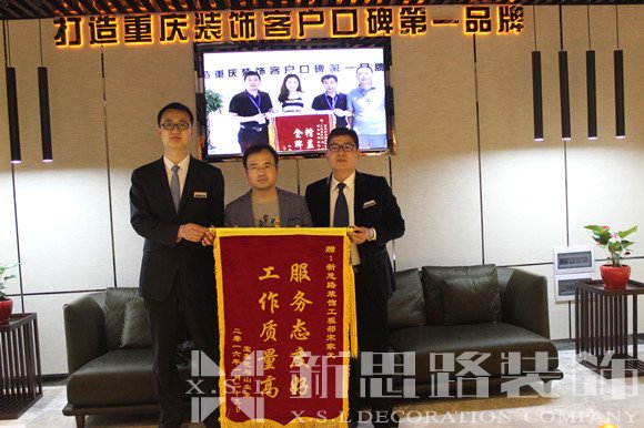 3月5日上午,寶嘉花與山業(yè)主劉老師專程來到新思路裝飾企業(yè)總部,將一面印有“服務(wù)態(tài)度好,工作質(zhì)量高”的大紅錦旗交到張總手中,以感謝新思路裝飾企業(yè)高品質(zhì)的服務(wù)態(tài)度和良好的工作作風(fēng)。