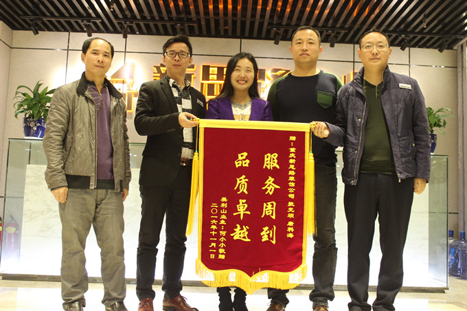 11月12日上午,美利山業(yè)主何老師及家人親臨南坪總部新思路裝飾為設(shè)計(jì)師敖元壩,工長(zhǎng)唐科海送上一面印有:“服務(wù)周到,品質(zhì)卓越”的錦旗。這是對(duì)新思路裝飾品質(zhì)的認(rèn)可,這也正是我們所秉承:客戶滿意是我們唯一的工作標(biāo)準(zhǔn)”的裝修理念。