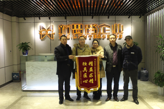 1月13日早上10點左右,重慶的早晨濃霧剛剛散開,露出多日不見的陽光,來自保利觀塘的業主羅先生一家就來到了新思路裝飾總部,為我們公司的黎志忠項目經理與黃福燕贈上一面上書“精益求精、獨具匠心”的錦旗,借以表達對我公司兩位員工的感激之情。