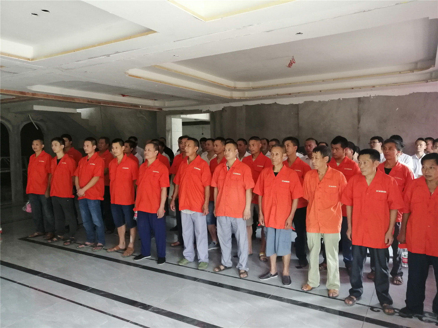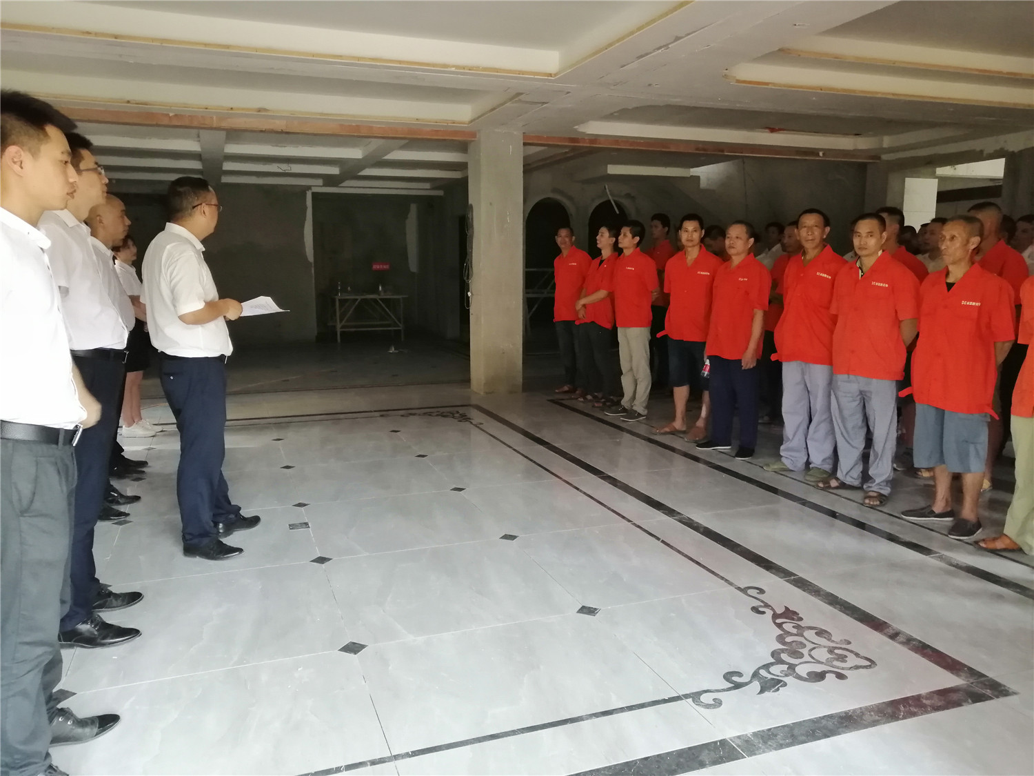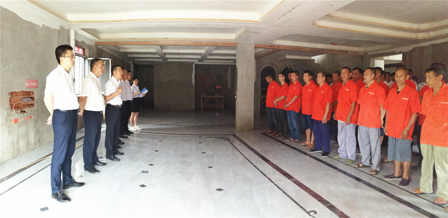 給工人和項(xiàng)目經(jīng)理整隊(duì),展現(xiàn)良好精神面貌