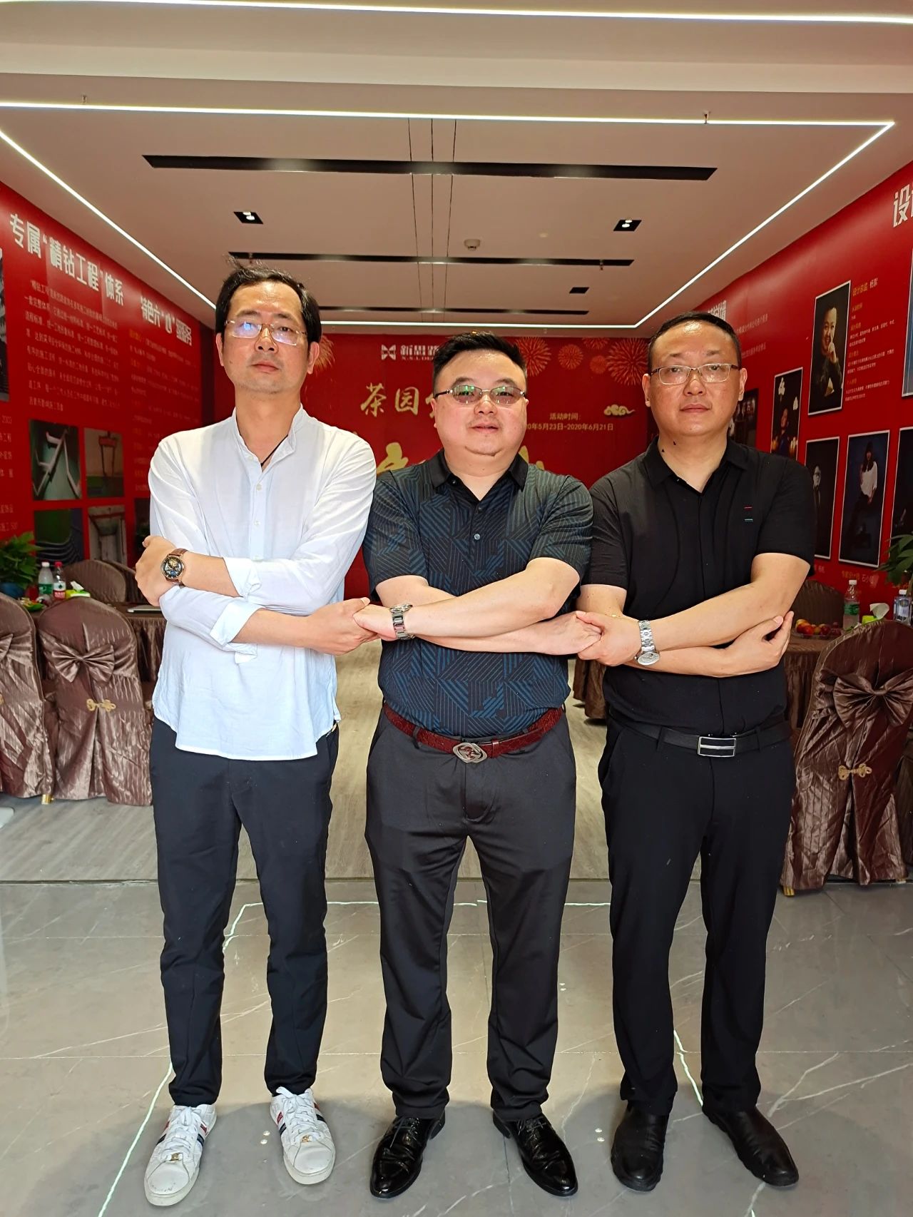 ▲新思路裝飾設計部總監梅總、李總、工程材料總監文總合影,以示團結一心、砥礪同行之意