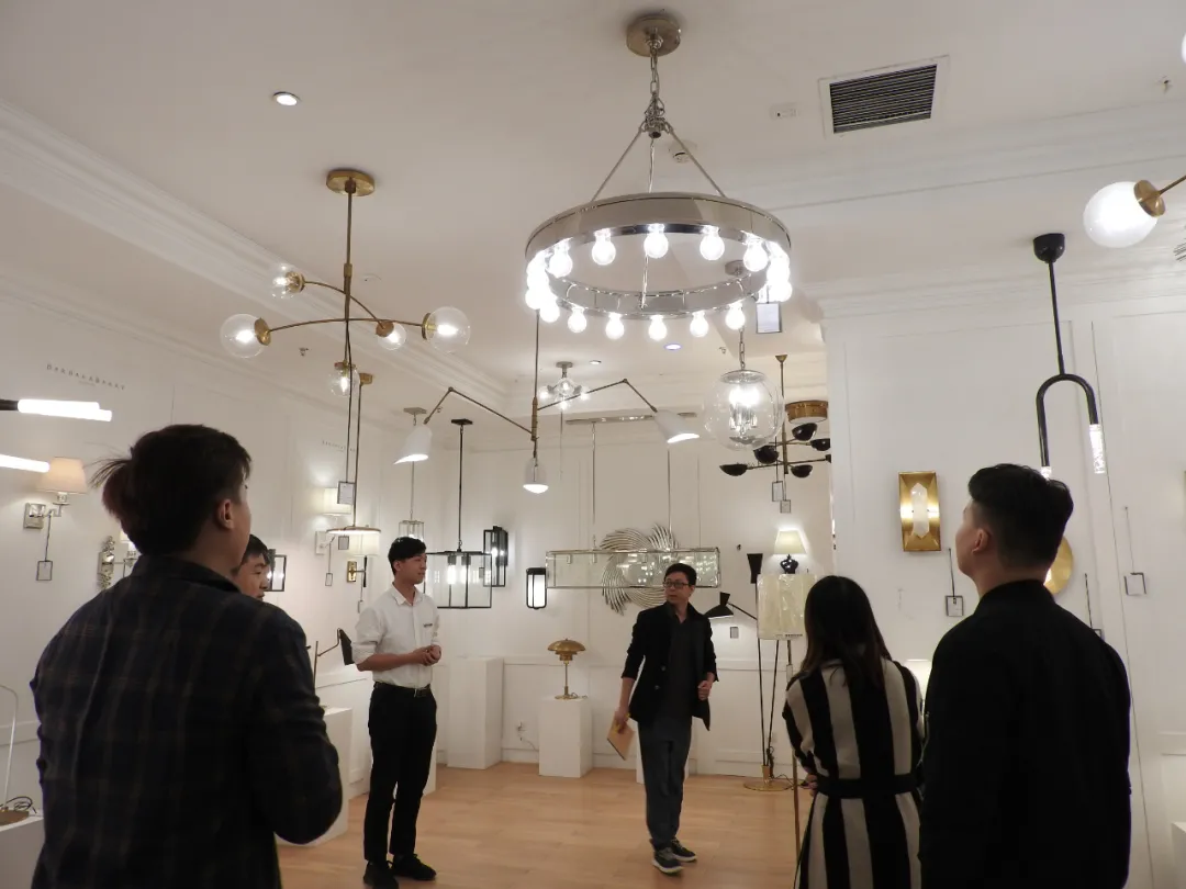 在參觀完各種不同的燈具后,我們又接受了一位擁有二級資質的燈光設計師的培訓。老師講解詳盡,為我們的設計師展示了不同燈光的合理運用方法,也教給了設計師不少燈光設計上的小要點。比如“見光不見燈”,如何在光線充足的前提下隱藏燈具等等。設計師們聽得認真,筆記不斷,紛紛表示此行學到很多,受益匪淺。