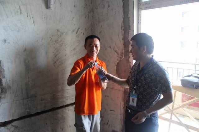 公司領(lǐng)導(dǎo)的關(guān)懷及送清涼活動,送到了員工的心坎上,暖在了員工的心田里。“公司領(lǐng)導(dǎo)冒著高溫給我們送來清涼解暑的礦泉水,就是對我們最真摯的關(guān)心啊!”,“感謝公司對我們的關(guān)懷和慰問,我們再苦再累,心也是甜的,精神更好了,干勁也更足了!”……工人師傅們用最樸實真摯的話語表達著對公司的感謝之情。而正好碰到公司送水的一些業(yè)主,也對公司領(lǐng)導(dǎo)冒著高溫給一線工人送水的行為給予了高度贊揚。金源御府8棟27-3的李老師就表揚說:“公司領(lǐng)導(dǎo)頂著烈日,親自給一線工人送水,新思路裝飾這點做的很好很到位,衷心祝愿新思路裝飾的明天更加美好”。而麓山別苑20棟2單元1—2的陳老師也稱贊道:“這么熱的天,新思路的領(lǐng)導(dǎo)們能到工地慰問工人,說明新思路裝飾是一家非常有管理,極具人性化的企業(yè),相信新思路今后的發(fā)展會越來越好,道路會越走越寬!”