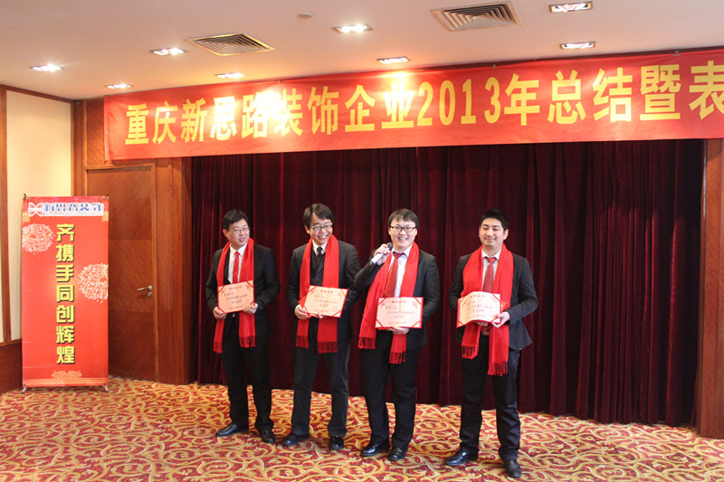 接下來進行的是本次大會的一項重要議程——表彰大會。來自南坪、江北和工程部的10位家人受到了嘉獎表彰,李總、蔣經理、張總、文經理分別為獲獎者頒發了榮譽證書和獎金。2013年,全體新思路人在自己的崗位上,愛崗敬業,為公司的發展奉獻青春和熱血,在平凡的崗位上,做出了不平凡的業績,涌現出了一大批優秀員工,這10位家人是我們學習的榜樣。