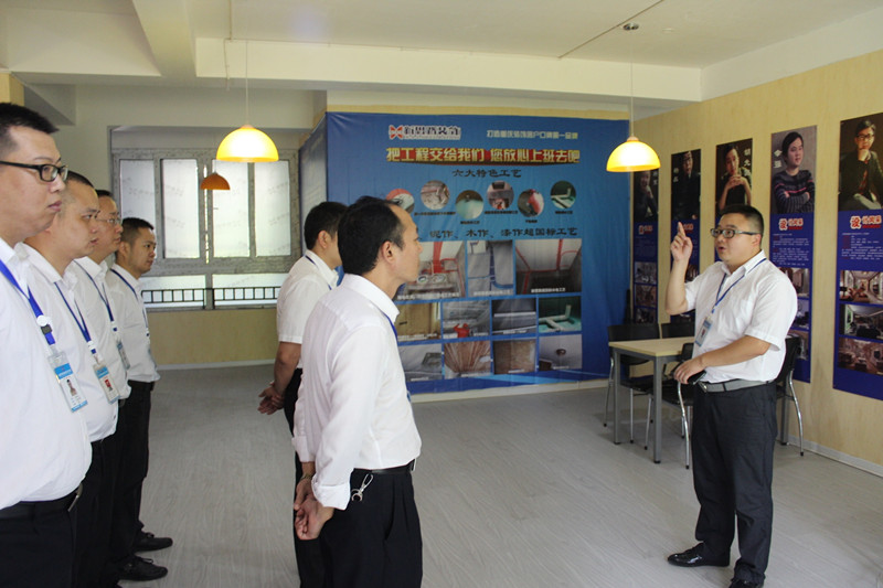 在雅居樂工地,李總一行認真察看了解了工地的施工進度、施工細節、工藝工序等情況。在檢查的同時,李總還根據自己多年的軟裝設計經驗,向大家悉心傳授了室內軟裝搭配技巧和用材講究等知識,他的講解新穎獨到、精辟到位,令在場的所有管理層人員受益匪淺。