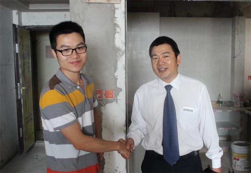 業主高興地同張總握手,并稱贊新思路工地做得確實好