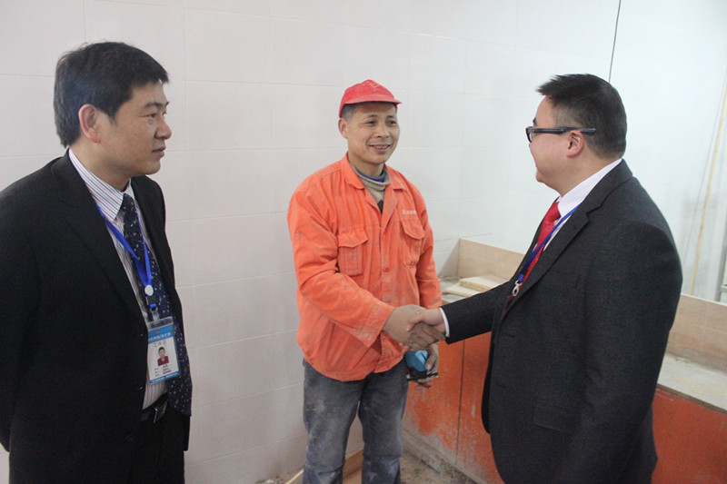 在美的集團(tuán)員工食堂工地,李總一行認(rèn)真察看了解了工地的施工進(jìn)度、施工細(xì)節(jié)、工藝工序等情況,同時還詳細(xì)了解了工人生活和工地安全監(jiān)管情況。針對檢查中發(fā)現(xiàn)的問題,李總要求現(xiàn)場負(fù)責(zé)人要切實負(fù)起責(zé)任,保證施工質(zhì)量,決不允許留下安全隱患,同時做好工人工資發(fā)放的各項準(zhǔn)備,讓工人們開開心心過好年。