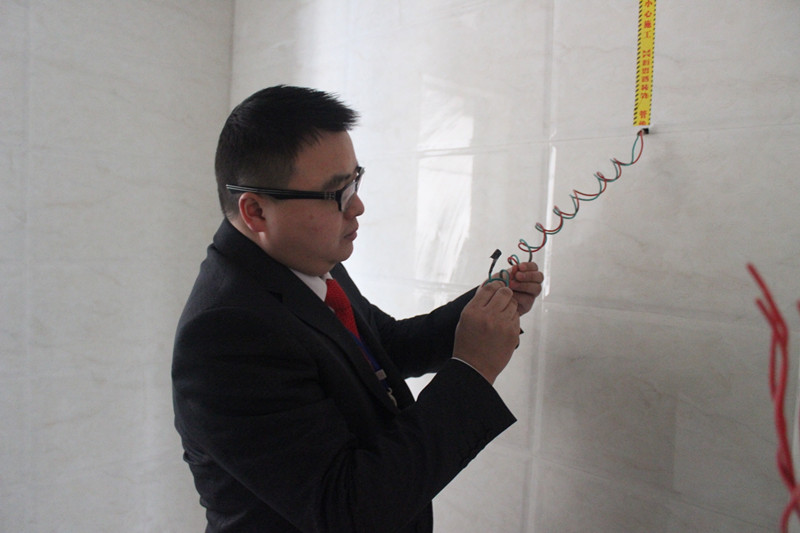 看到標(biāo)識帶脫落,李總細(xì)心地將標(biāo)識帶貼好