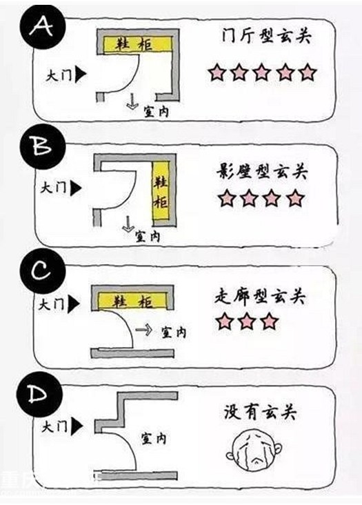 ,然后能能卸下一天的疲憊,這就是玄關的功能。一般家庭的玄關設計有如下幾種,